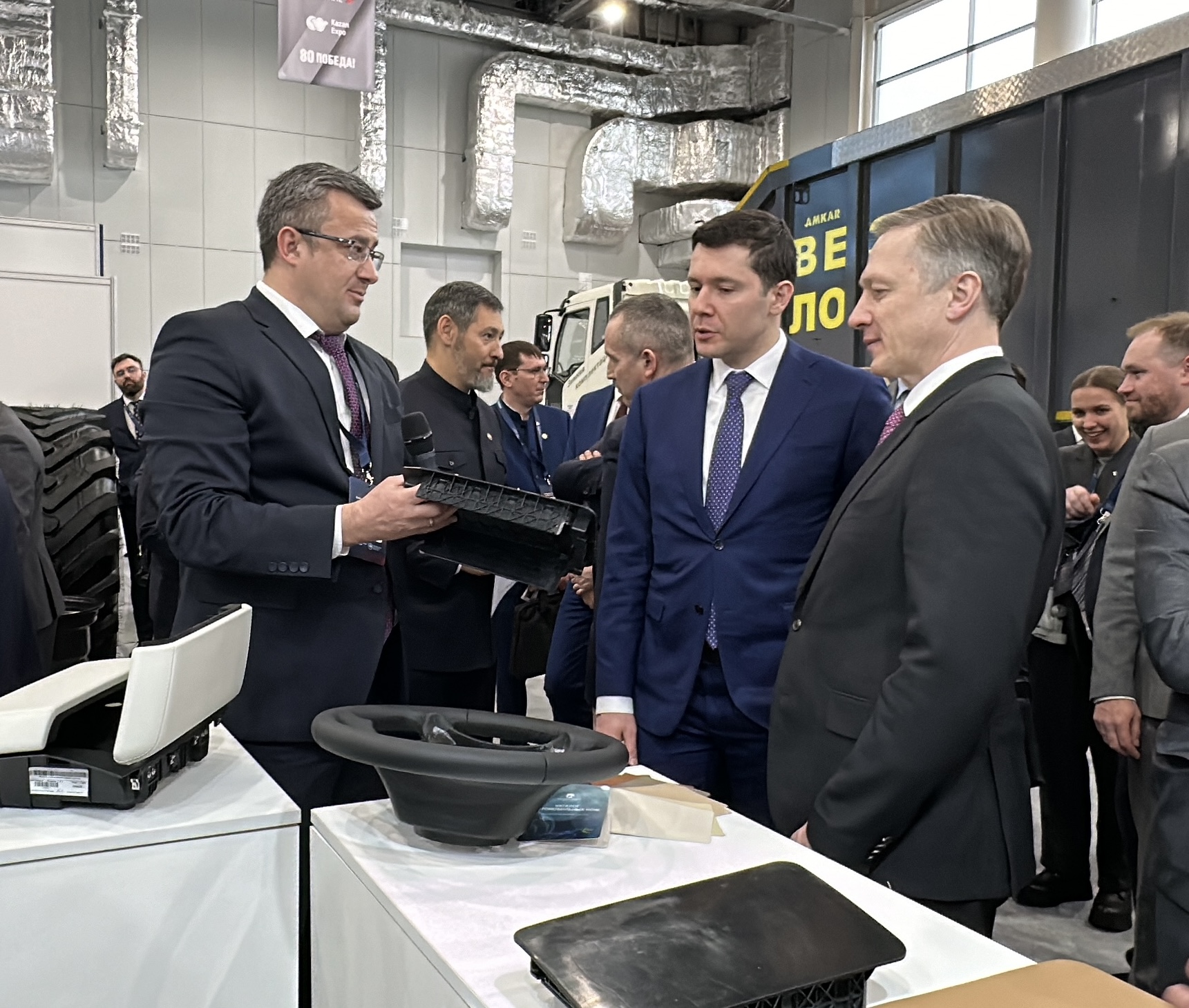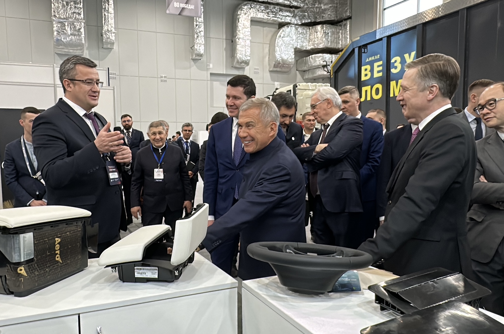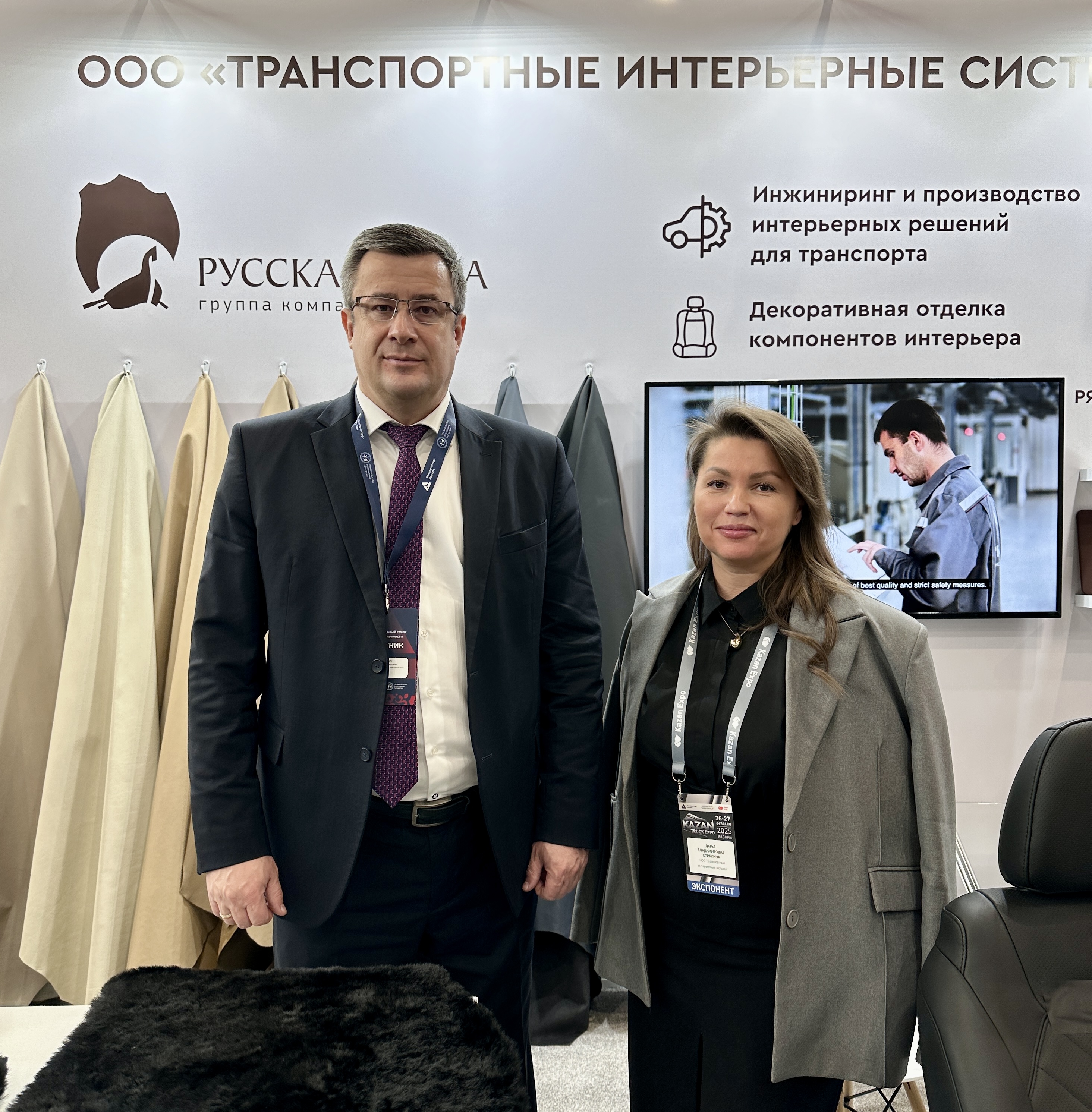 27 февраля 2025 года Раис Татарстана Рустам Минниханов и Министр промышленности и торговли России Антон Алиханов посетили стенд ООО «Транспортные интерьерные системы» (ГК «Русская кожа») на специализированной выставке «Kazan Truck Expo».